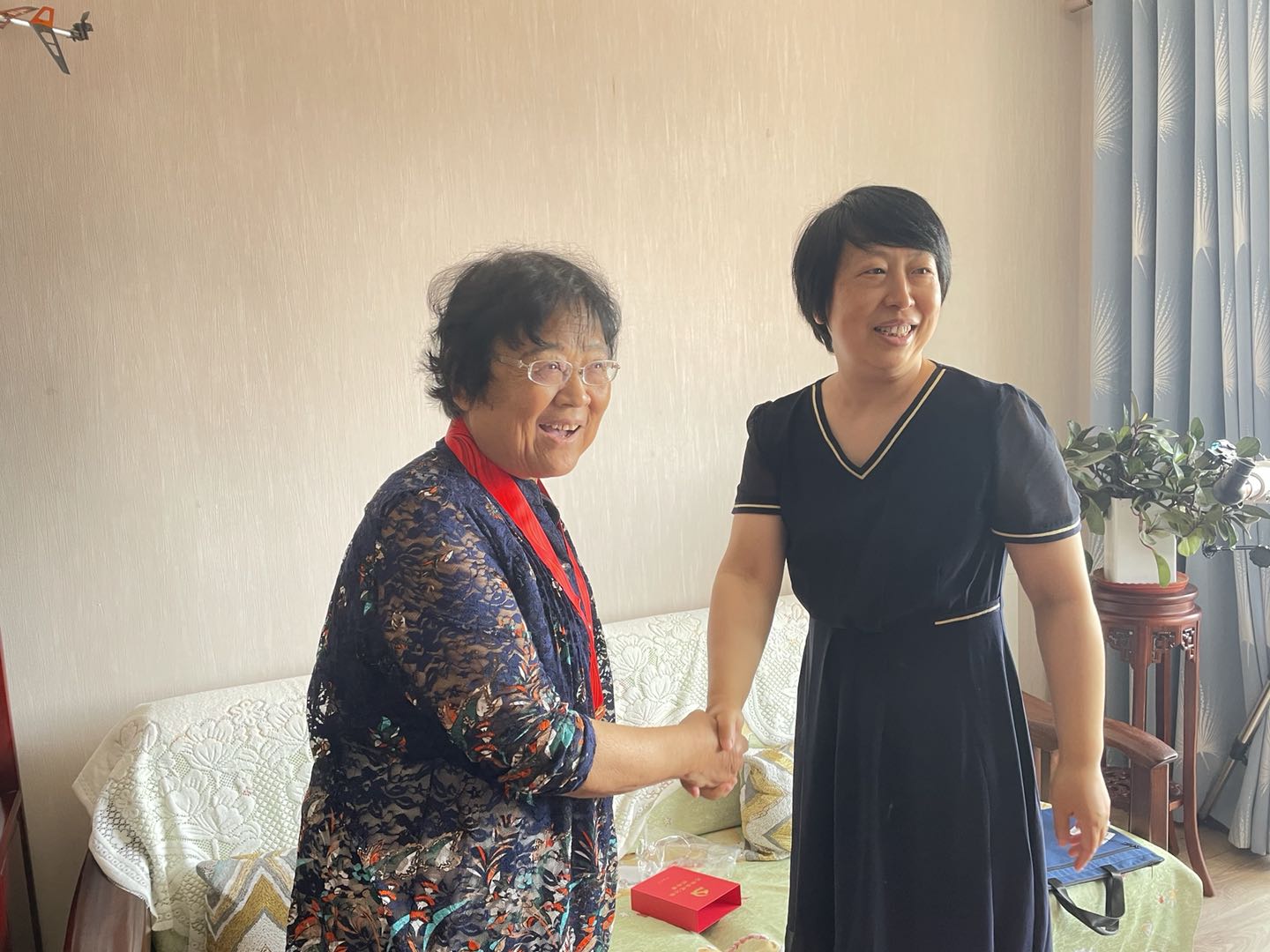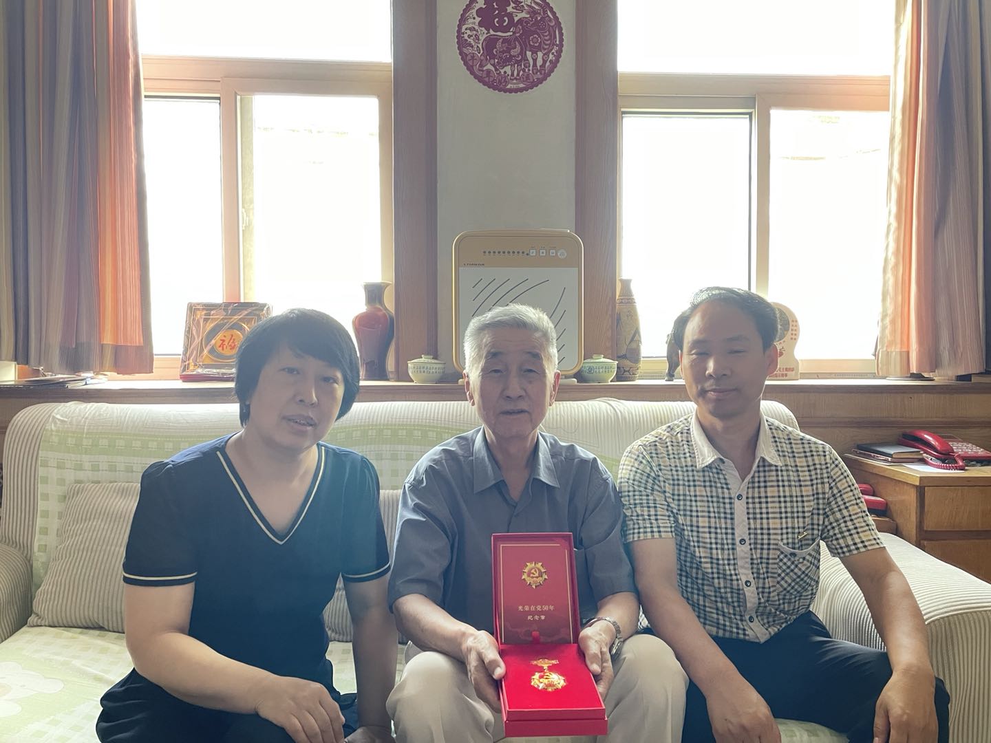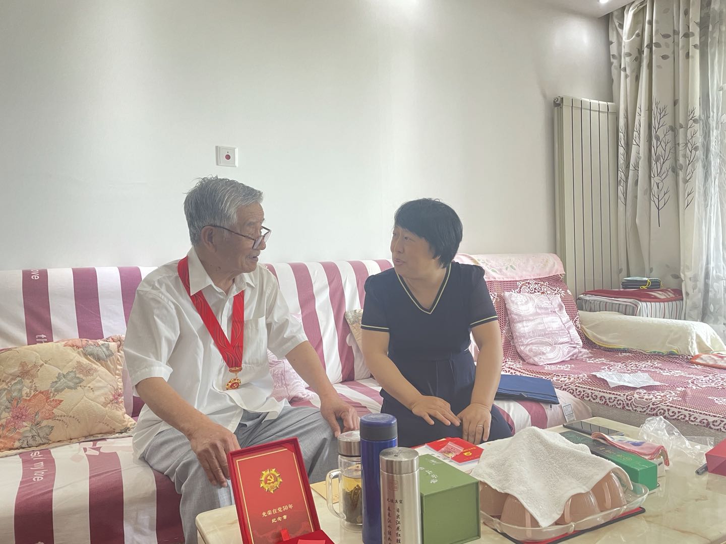 6月17日,公司党委书记王慧、副书记王喜明一行上门慰问学院获得“光荣在党50年”纪念章的老党员,并为他们送去党史学习教育图书和慰问金。党中央2021年首次颁发“光荣在党50年”纪念章,学院共有6名老党员获此殊荣。